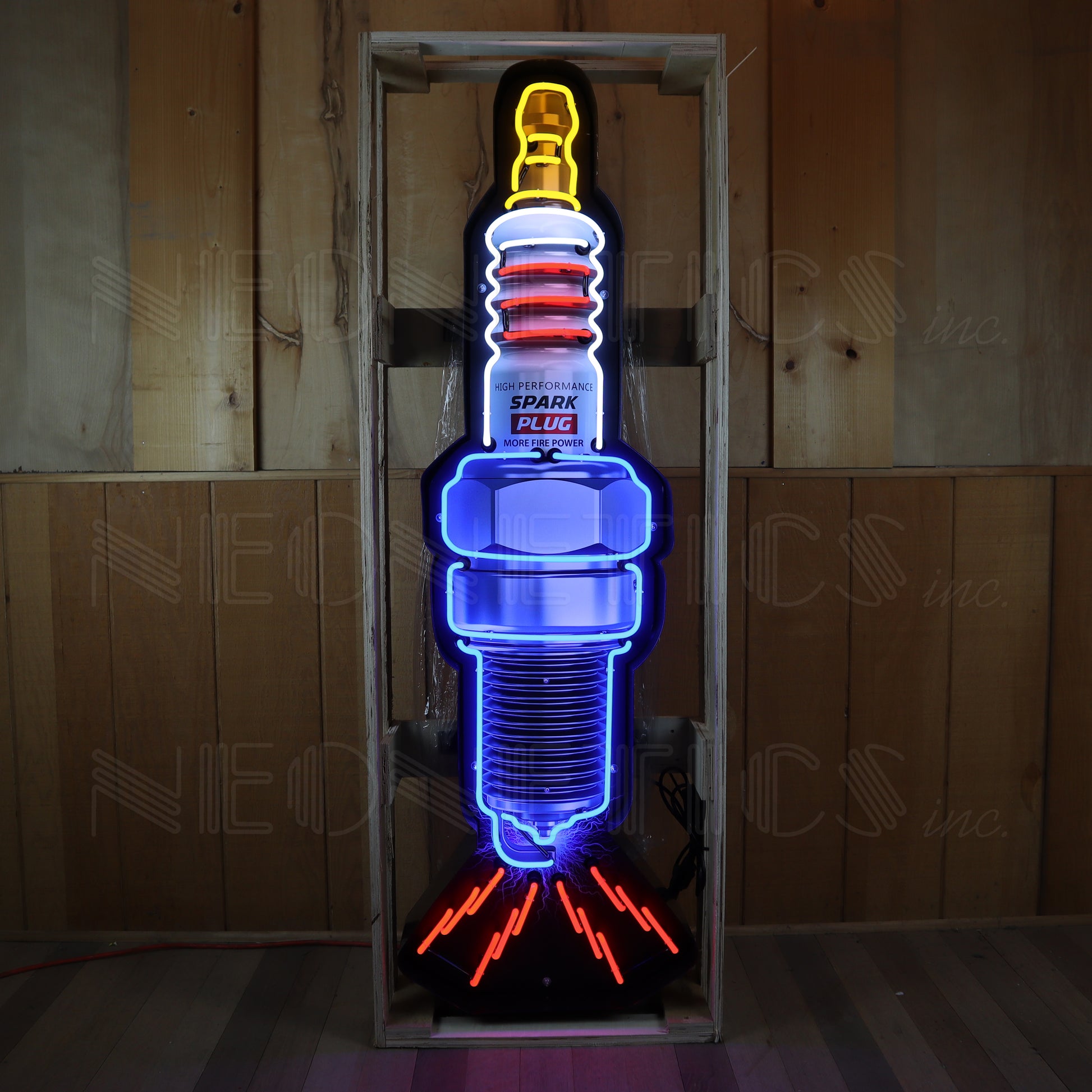 SPARK PLUG NEON SIGN IN SHAPED STEEL CAN 9SPARK